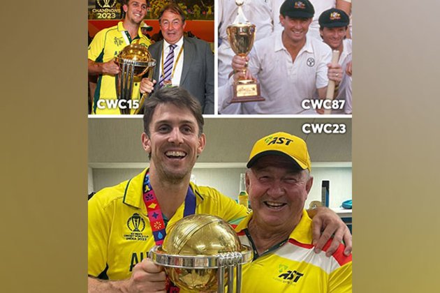 Ahmedabad (Gujarat) [India], November 20 (ANI): Australian all-rounder Mitchell Marsh expressed happiness with his team’s ICC Cricket World Cup title win, posting a picture with his father, legendary batter Geoff Marsh who has also lifted the gold with Aussies back in 1987.